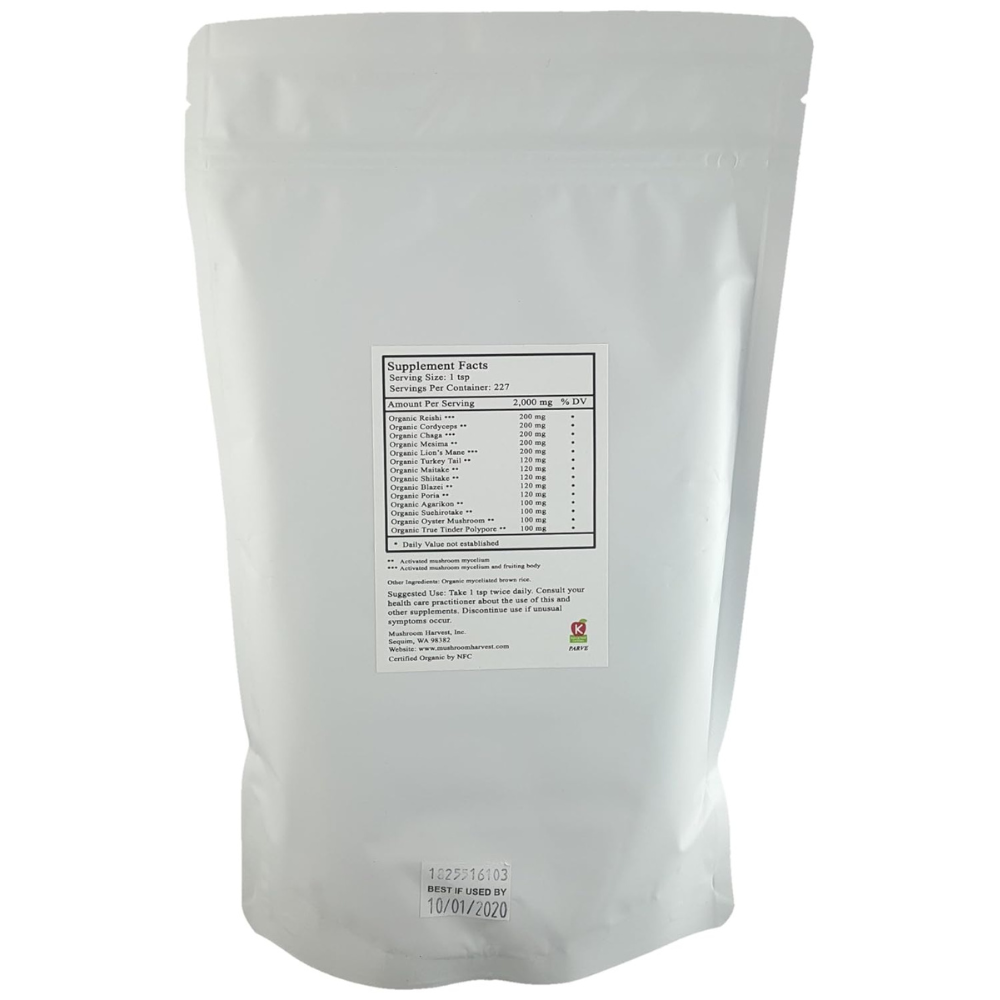 14 Blend Mushroom Powder by Mushroom Harvest, Inc. * 1 lb.(454g)*USDA Certified Organinc* Powerful blend of 14 potent medicinal mushrooms. Excellent to cook with or put in smoothies, juices, coffee, or tea! Make your own capsules. These statements have not been evaluated by the FDA. These products are not intended to diagnose, cure, treat, or prevent any disease