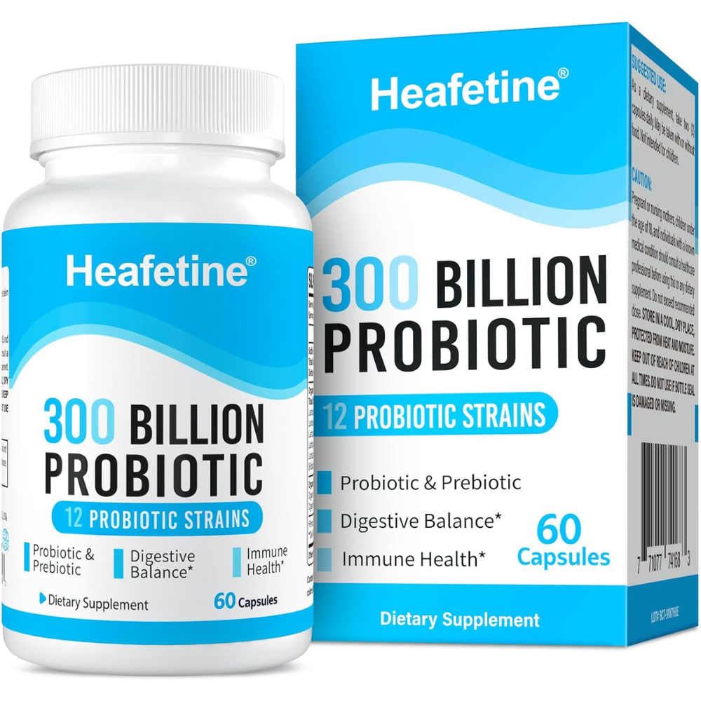 【Shelf Stable & Delayed Release】Heafetine 300 Billion probiotics capsules with 300 Billion Living probiotics per serving, Take two capsules daily. Uses release technology and does not require refrigeration. Our probiotic supplement is a convenient capsule you can take anywhere and everywhere.