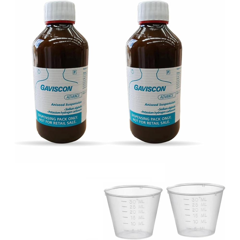 A 2 Z Store Gaviscon Advance Aniseed 500ml Pack of 2 with (2 Free Plastic Liquid Measuring Cups 30ml)
