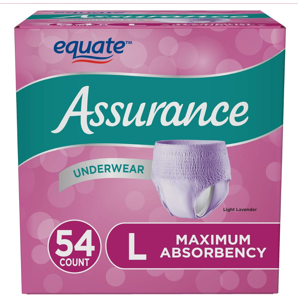 Assurance Incontinence & Postpartum Underwear for Women offers you discreet and comfortable protection with a product you can depend on. This women’s disposable underwear offers maximum absorbency that locks away moisture to keep you dry. It is specifically designed with a contoured core that allows a better fit between the legs. Plus, the breathable material allows you to stay cool and happy and the Odor Guard helps to keep odor from forming. They come individually wrapped for convenient and discreet access in your purse, gym bag, or glove compartment in your car. This underwear can be worn day or night. The size large is made to fit a waist of 38 inches to 50 inches in diameter. Get maximum absorbency with Assurance Incontinence & Postpartum Underwear for Women.