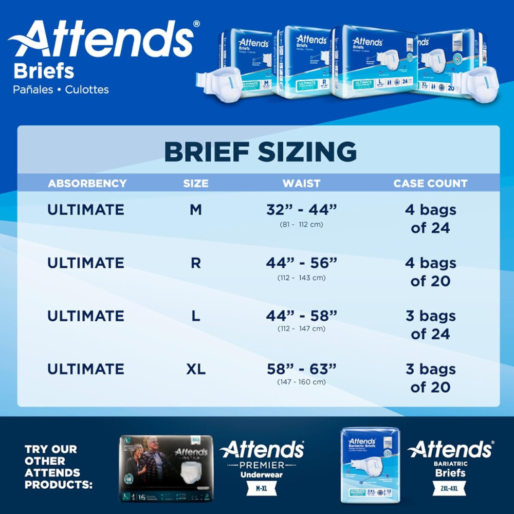 Be the first to review “Attends Advanced Briefs with tabs for Adult Incontinence Care with Dry-Lock® Containment Core, Ultimate Absorbency, Unisex, Medium, 24-count (x4)”