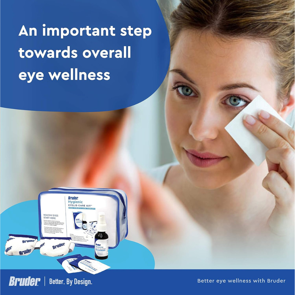 The good news is that a simple routine can prevent or treat problems to help you feeling more comfortable and healthy. Order your Bruder Hygienic Eyelid Care Kit today – it contains all you need for a daily at-home eye care routine.