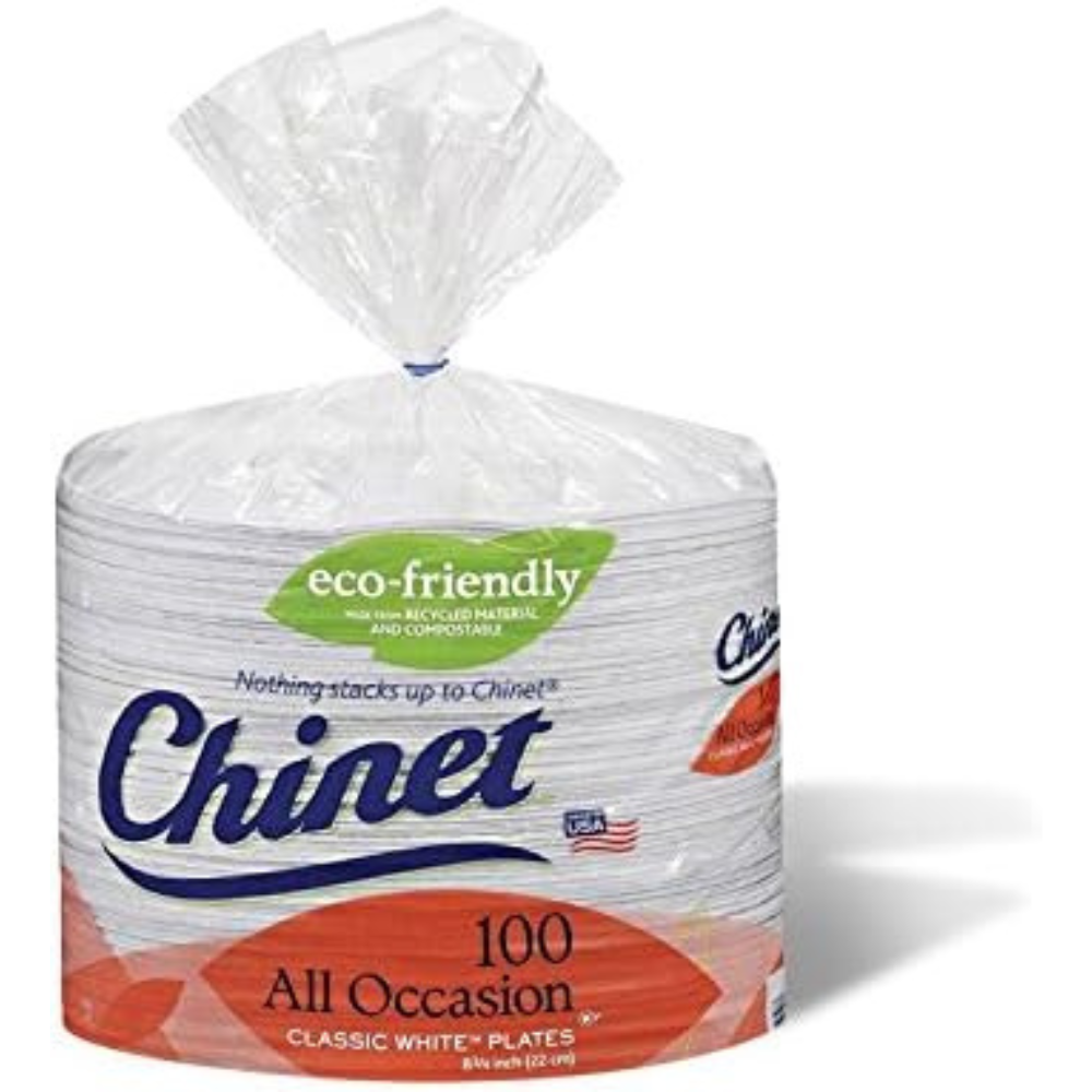 Chinet Classic White, Round All Occasion Fiber Plates, 8.75 Inch, 100 Count
