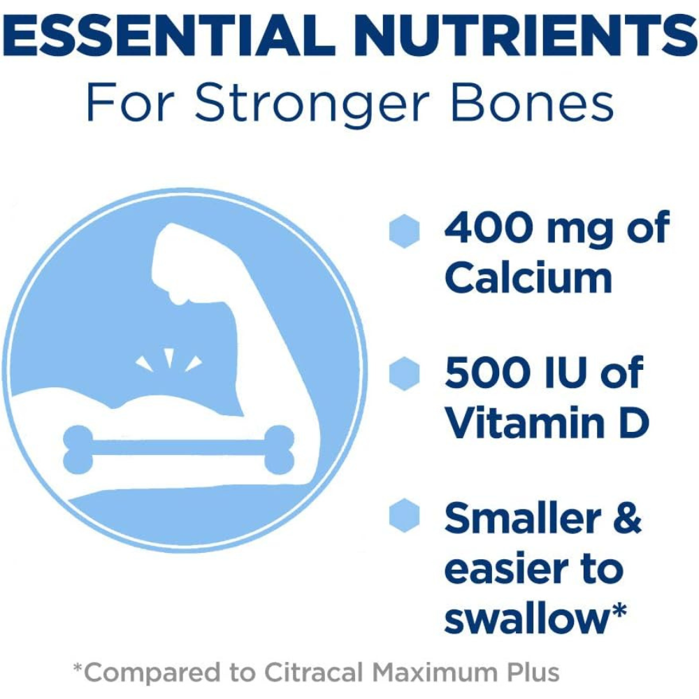 Citracal Petites sugar free Calcium Citrate caplets are designed to provide the calcium and vitamin D3 you may not get enough of from the foods you eat each day. Calcium is an essential mineral needed for bone health.* Add Citracal Petites as part of your daily regimen to support strong bones.* Vitamin D3 promotes calcium absorption. Citracal Petites contains 400 mg of calcium and 500 IU of vitamin D3 per serving to help achieve optimal bone health and defy bone aging. They are smaller and easier to swallow compared to Citracal Maximum Plus and can be taken with or without food. Citracal is the #1 Doctor and Pharmacist recommended calcium brand. So, whether you’re 19 or 90, talk to your doctor about adding Citracal Petites to your diet and overall wellness and fitness regimen to help support bone health* Adequate calcium and vitamin D throughout life, as part of a well-balanced diet. Pharmacy Times Survey, 2020 *This statement has not been evaluated by the Food and Drug Administration. This product is not intended to diagnose, treat, cure, or prevent any disease.