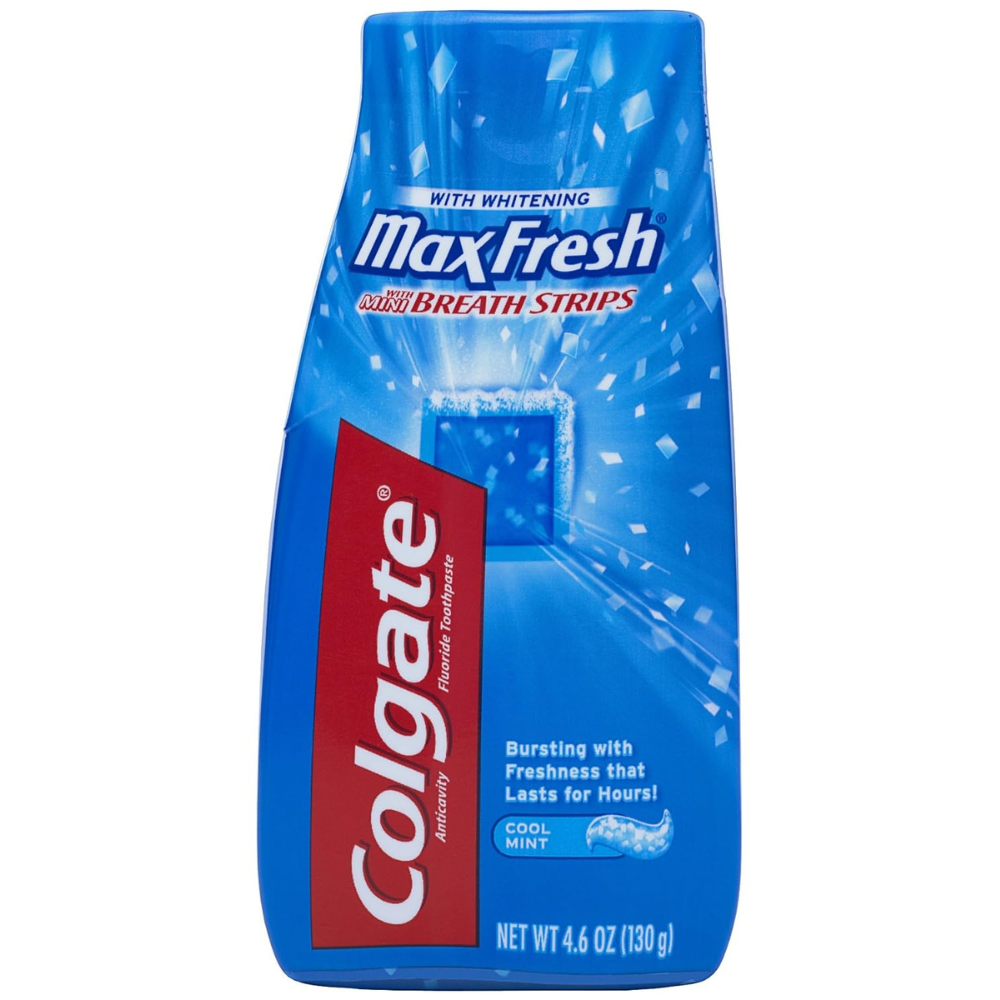 Breathe confidently with this unique toothpaste formula, packedwith hundreds of mini breath strips. This fluoride toothpaste unleashes a powerful rush of freshness for long-lasting fresh breath. Colgate Max Fresh cool mint invigorates your brushing experience and leaves your breath feeling fresh for hours. Plus, it fights cavities and whitens teeth leaving you with a healthy smile.