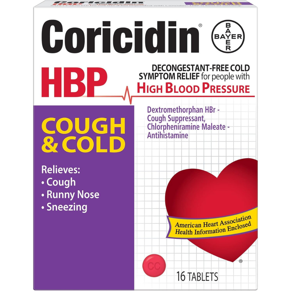 According to the American Heart Association, people with high blood pressure should be aware that the use of decongestants may raise blood pressure or interfere with the effectiveness of some prescribed blood pressure medications. Nasal decongestants relieve nasal congestion by constricting blood vessels in the nose. Coricidin HBP Cough & Cold tablets provide powerful relief from cough, runny nose and sneezing. It’s the #1 brand of powerful cold medicine specially formulated for people with high blood pressure. *Based on unit sales. Covered by the Bayer HealthCare LLC – Consumer Health 60-Day Satisfaction Guarantee. See below for details