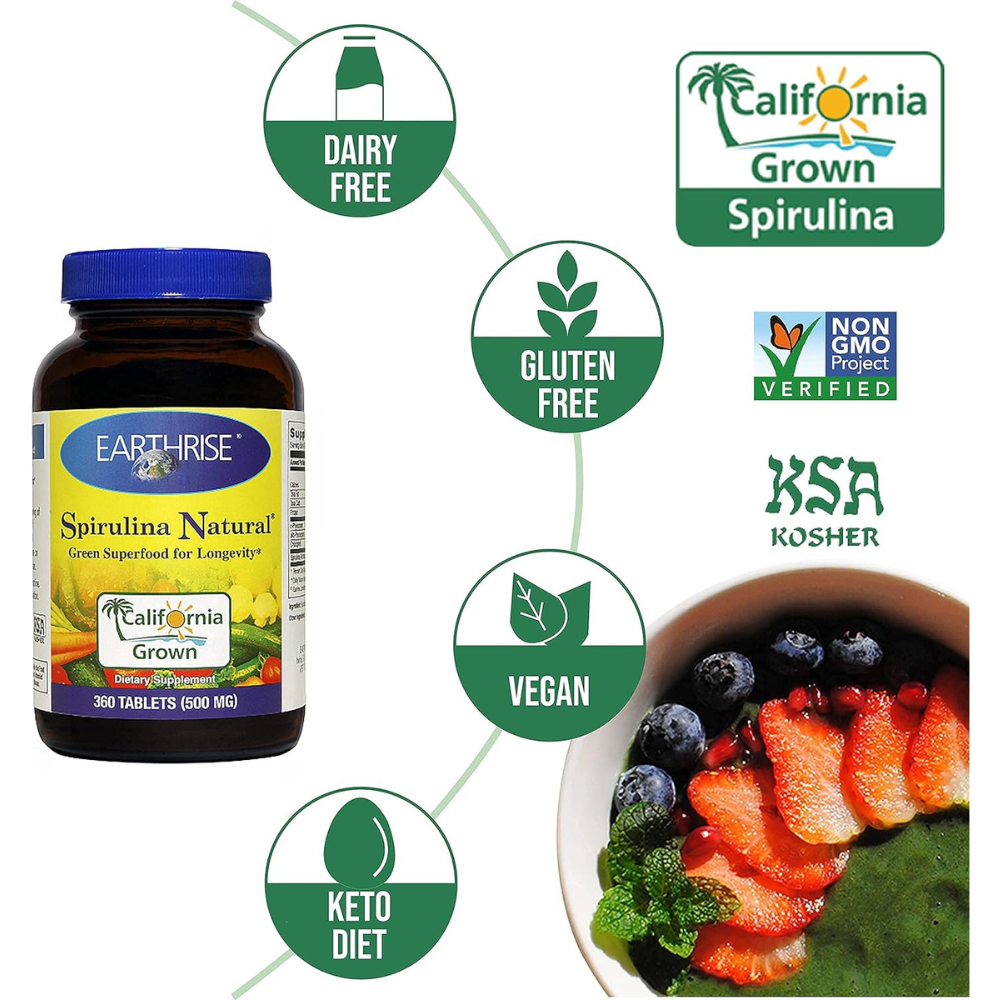 HIGHEST QUALITY AND SAFETY: Earthrise Spirulina is grown using Colorado River’s mineral-rich waters, and unlike organic products, no animal waste fertilizers are used in our hydroponic ponds. Our Spirulina is herbicide, Pesticide, additives, stabilizers, preservatives, and irradiation free. Highest quality assurance; over 40 tests on live culture and dry products