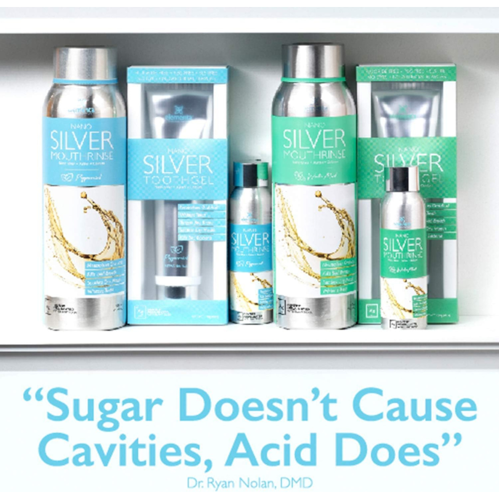 Nanosilver rinse balances mouth ph to encourage natural remineralization to return. This colloidal silver mouthwash does so with plant based ingredients that are gentle on the teeth, and completely alcohol and fluoride free.