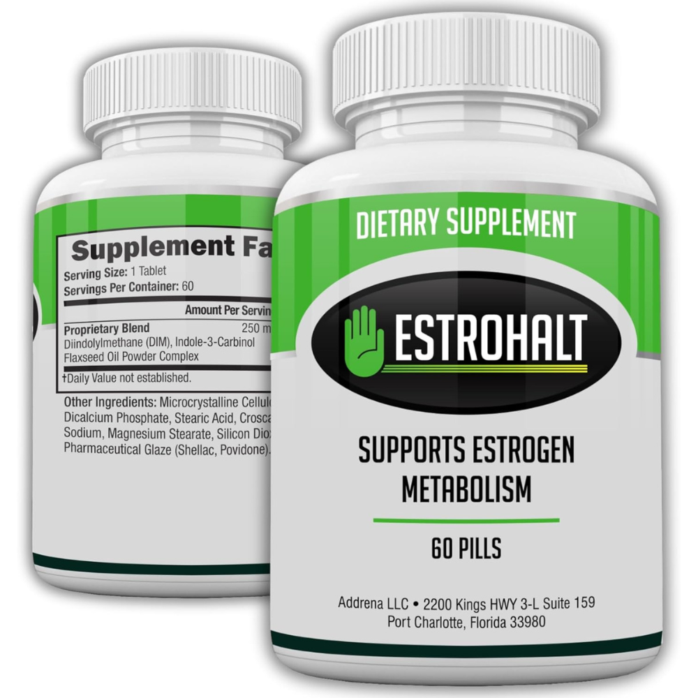 Estrohalt is the best estrogen-blocker and aromatase inhibitor you can buy over the counter because it has attributes that no other pill has. It lowers estrogen levels from it’s multiple aromatase inhibitors in DIM and Indole-3-Carbinol which reduce the conversion of estrogen in our bodies.