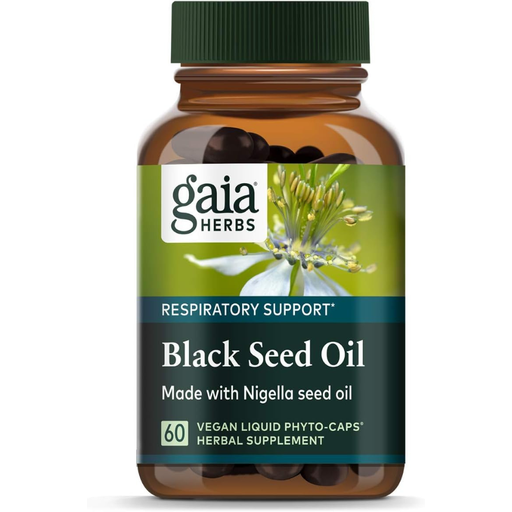 Gaia Herbs Black Seed Oil – Cold-Pressed Capsules for Lung, Respiratory, and Antioxidant Support – with Organic Nigella Seed Oil – Herbal Supplement – 60 Vegan Liquid Phyto-Capsules (30-Day Supply)