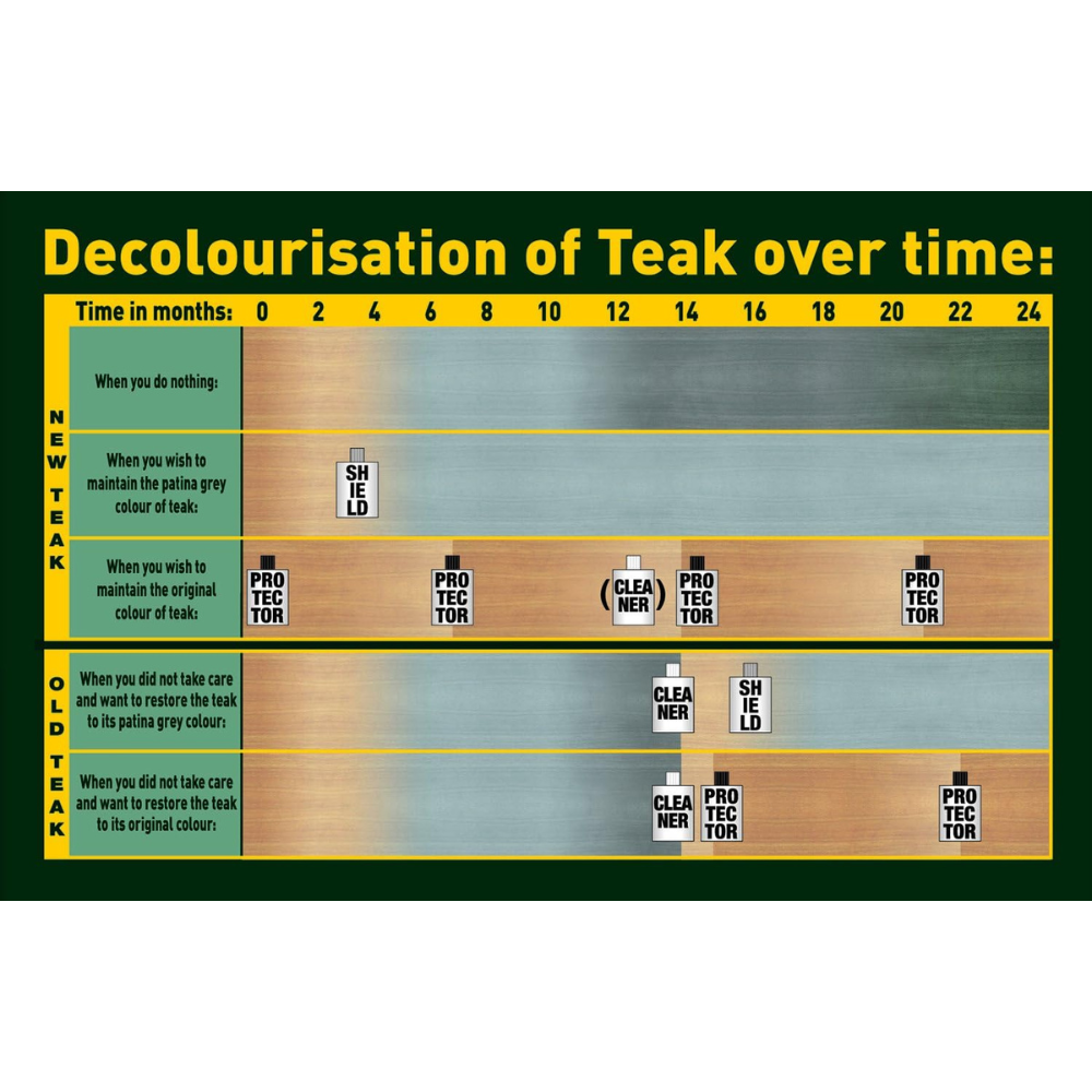 Golden Care Teak Protector helps to maintains the golden-brown color of teak for a longer time by protecting your furniture from harmful UV rays. Most teak-oils/sealers contain hazardous solvents/voc’s, but the Protector is completely water-based and solvent-free, which means a non greasy application.