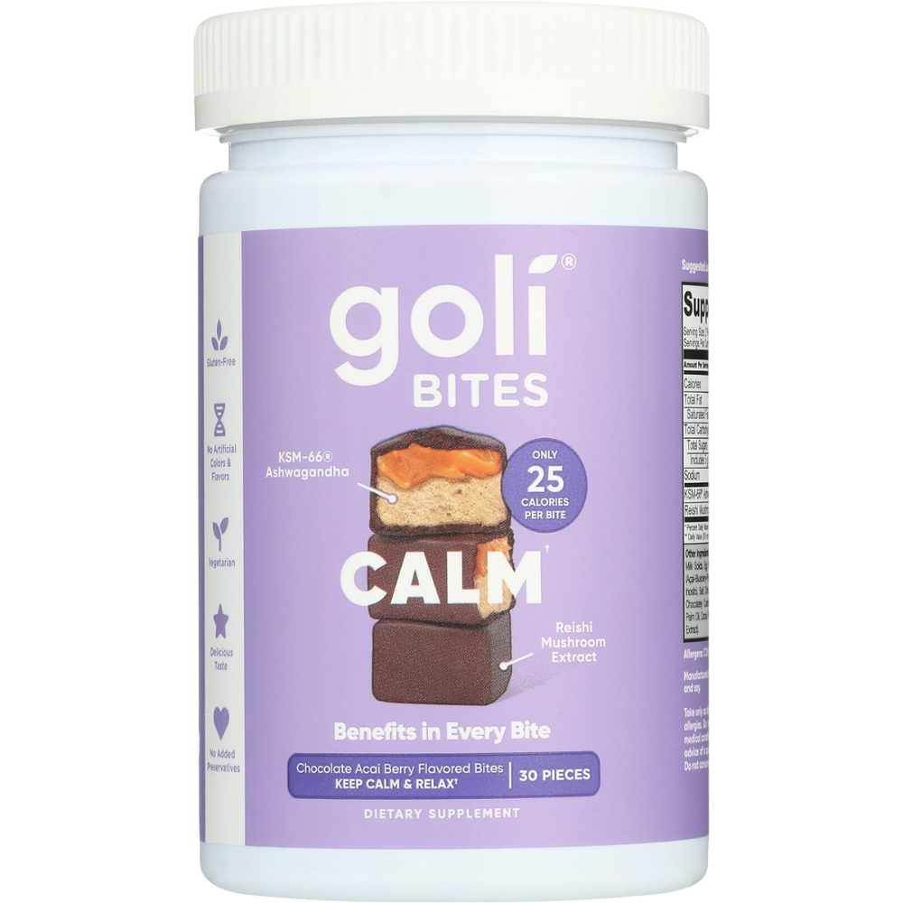Goli Nutrition Calm Ashwagandha Bites Chocolate Acai Berry Flavor, Caffeinated, Vegetarian, Gluten Free and No Added Preservatives, 30 Pieces (Pack of 1)