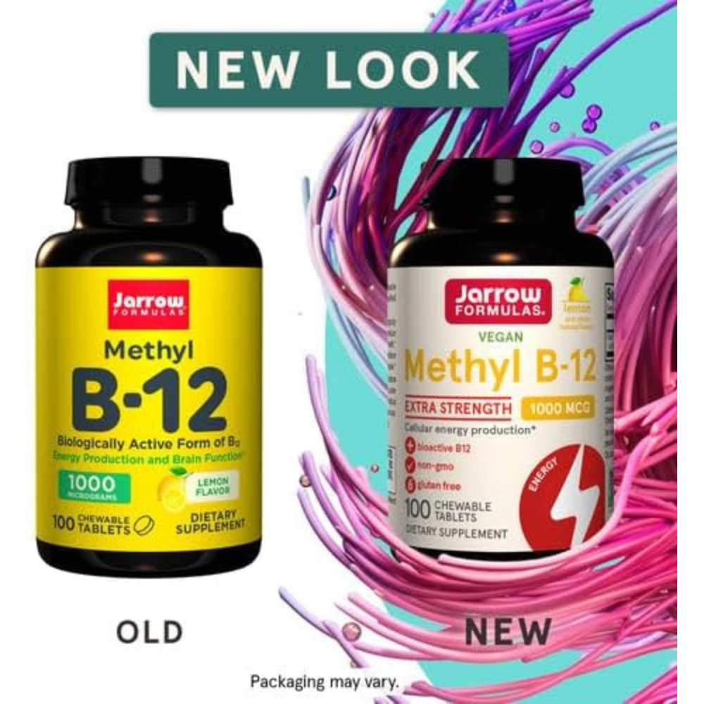 Jarrow Formulas Methyl B-12 1000 mcg – 100 Chewable Tablets, Lemon – Pack of 2 – Bioactive Vitamin B12 – Supports Energy Production, Brain Health & Metabolism – Gluten Free – 200 Total Servings