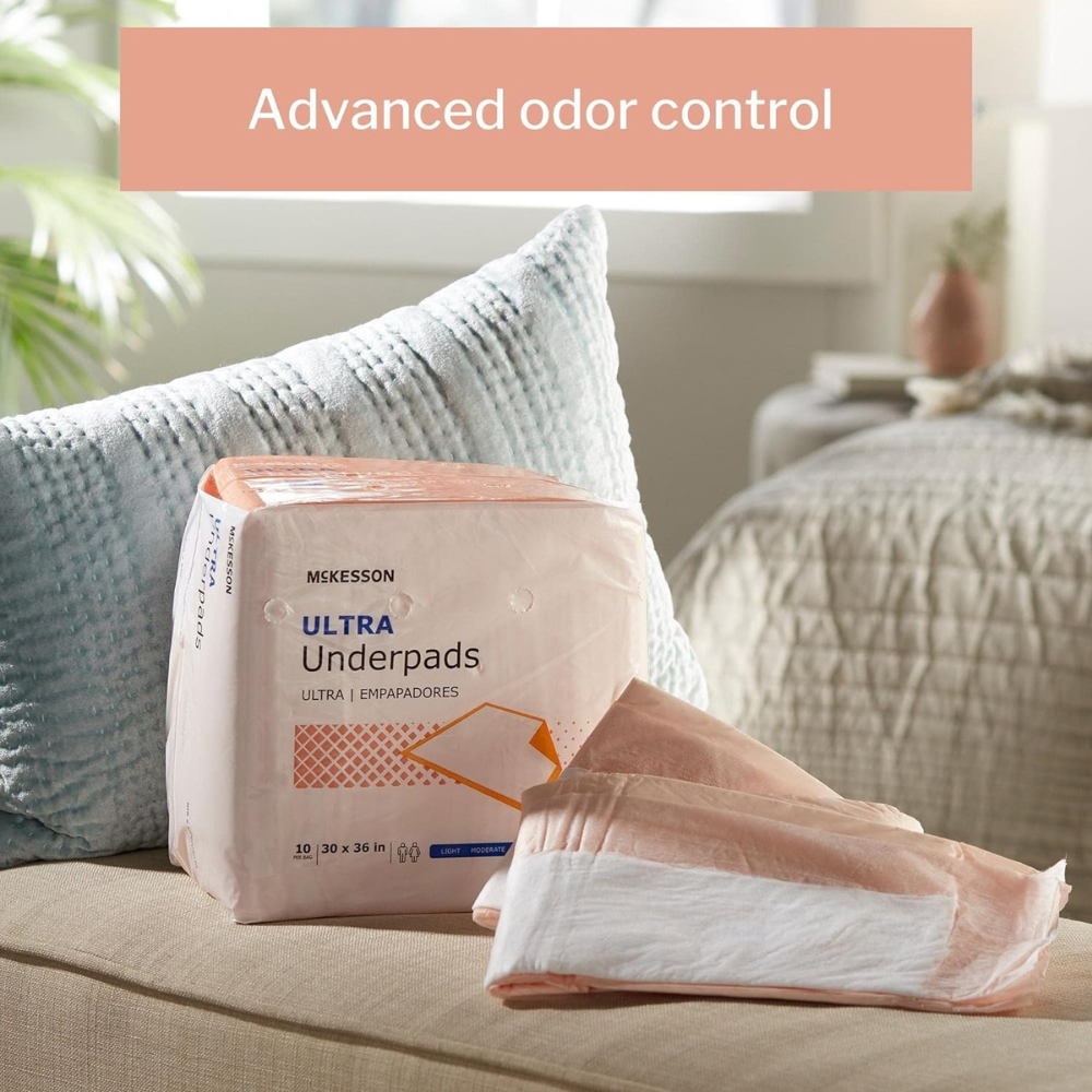 Treat incontinence with confidence. McKesson Ultra Underpads provide heavy absorbency, which promotes odor control and skin wellness for heavy incontinence. Available in a range of sizes, these bed wetting protection pads fit easily under a patient for extended, comfortable protection.