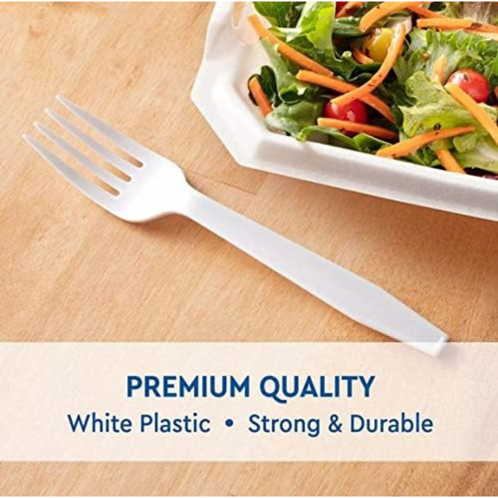 Member”s Mark Heavyweight White Plastic disposable (Spoons , Forks ,Knives) Great for home, office and picnics (Forks)