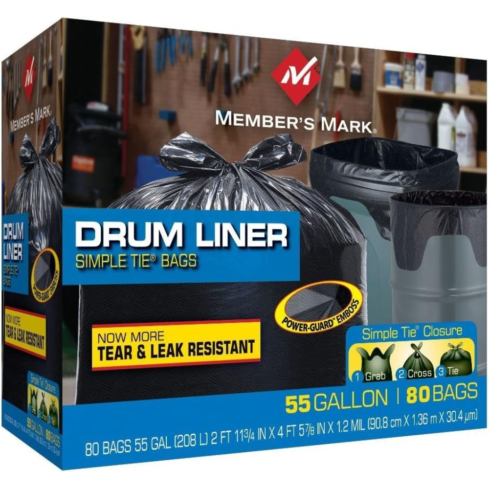 Member’s Mark 55 Gallon Simple Tie Trash Bags are easy to tie and tough enough for heavy-duty jobs. Recently redesigned for enhanced leak and tear resistance, these bags feature Power-Guard embossing for superior flexibility and offer convenient One-by-One dispensing.