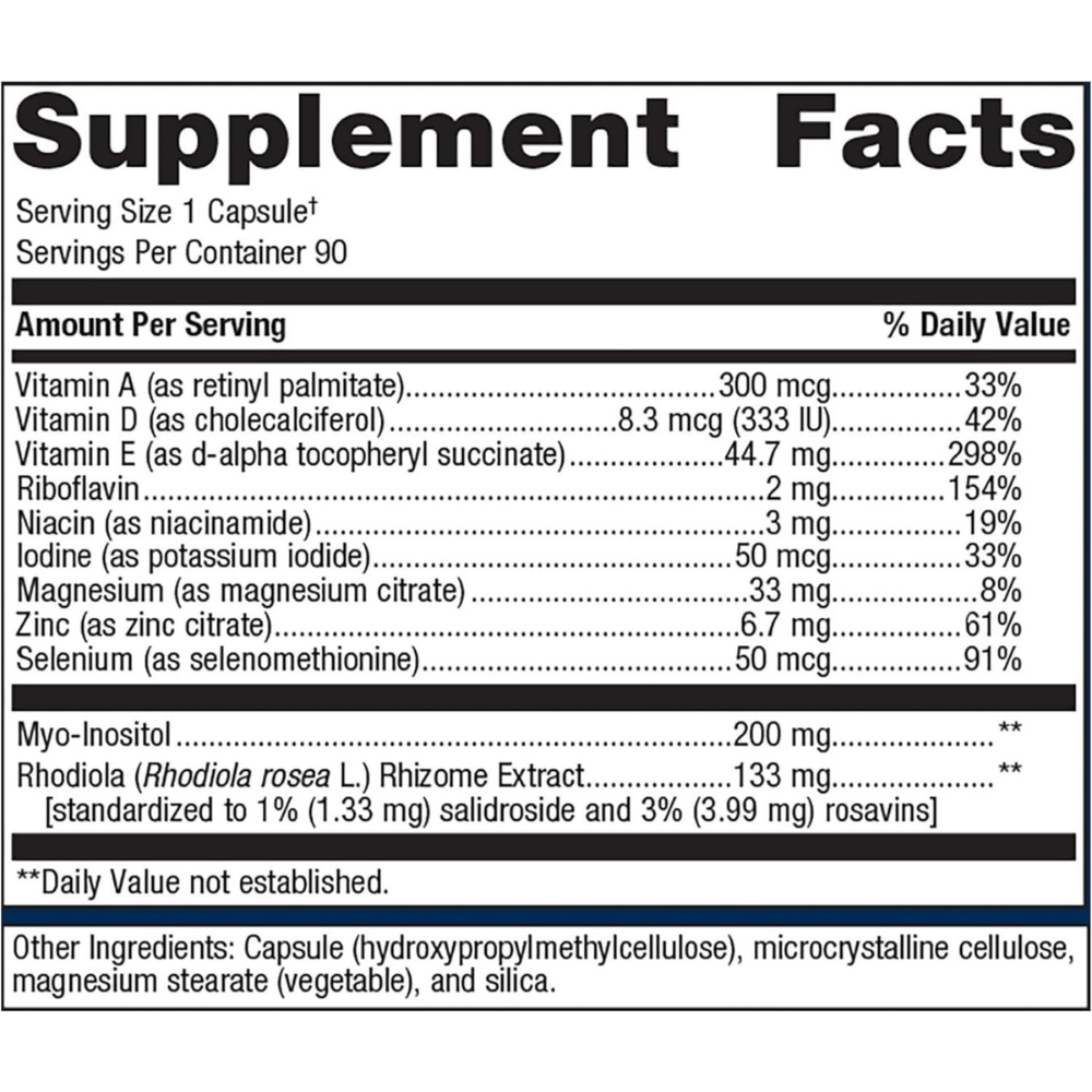 In addition to key nutrients like selenium and iodine, Thyrosol also contains a blend of vitamins and minerals that support the complex processes of the body. Magnesium, zinc, and riboflavin are included to assist in influencing energy levels and overall well-being.*