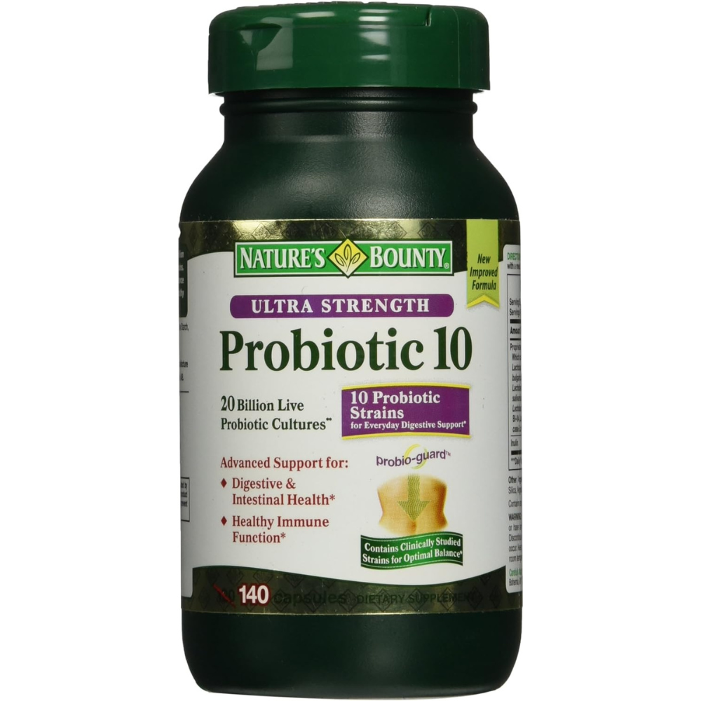 Nature’s Bounty Advanced Probiotic 10 contains 10 distinct naturally derived probiotic strains. These strains play an active role in aiding the body’s natural digestive process. Advanced Probiotic 10 Also contains 20 billion live probiotic cultures per serving. Probiotics not only support microbial balance of healthy intestinal flora, but assist in the body’s natural digestive process, and contribute to immune function. Probiotics help support the absorption of nutrients.