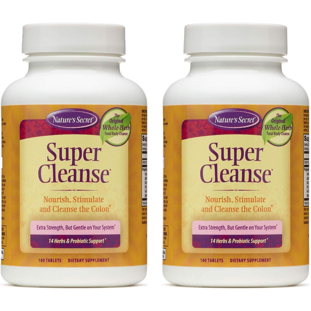 Nature’s Secret Super Cleanse Extra Strength Toxin Detox & Gentle Elimination Body Cleanse, Digestive & Colon Health Support – Stimulating Blend of 14 Herbs with Probiotics – 100 Tablets (Pack of 2)