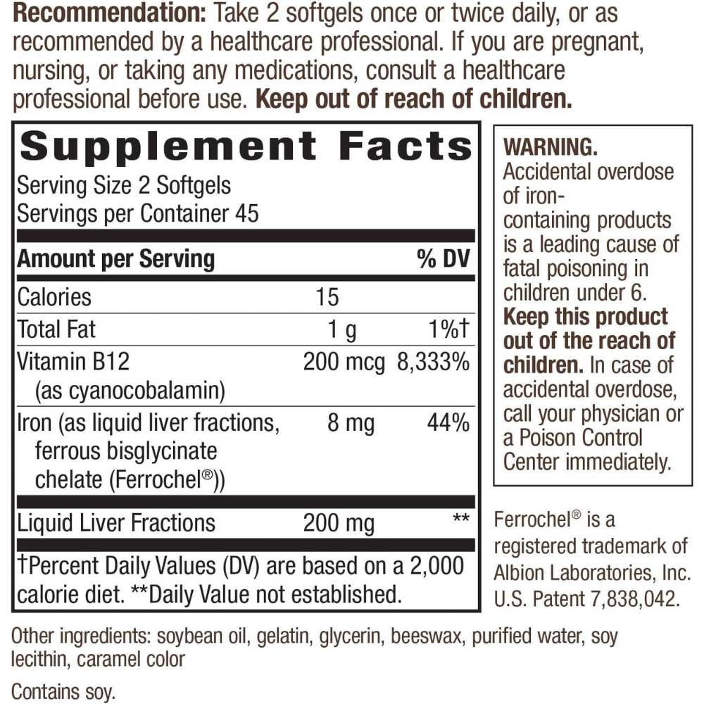 Nature’s Way Energizing Iron – Red Blood Cell Support* – 8 mg Iron, -200 mcg of Cyanocobalamin & Vitamin B12 per 2-Softgel Serving – Gluten Free – 90 Softgels
