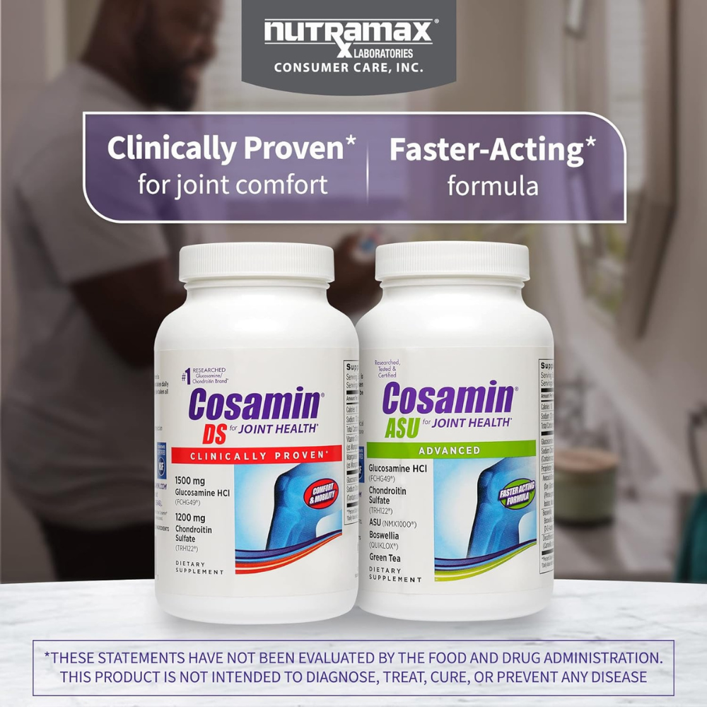 Stay active with Cosamin ASU, our advanced, faster-acting formula that contains a combination of ingredients formulated by a pharmacist to help inhibit enzymes that break down cartilage.* Each capsule contains our trademarked Glucosamine HCL, Chondroitin Sulfate, Avocado/Soybean Unsaponifiables (ASU), Quiklox Boswellia Serrata and Decaffeinated Green Tea Extract providing EGCG. Cosamin ASU has been researched, tested and certified by over 80 quality checks so you can purchase with confidence. *These statements have not been evaluated by the food and drug administration. This product is not intended to diagnose, treat, cure, or prevent any disease.