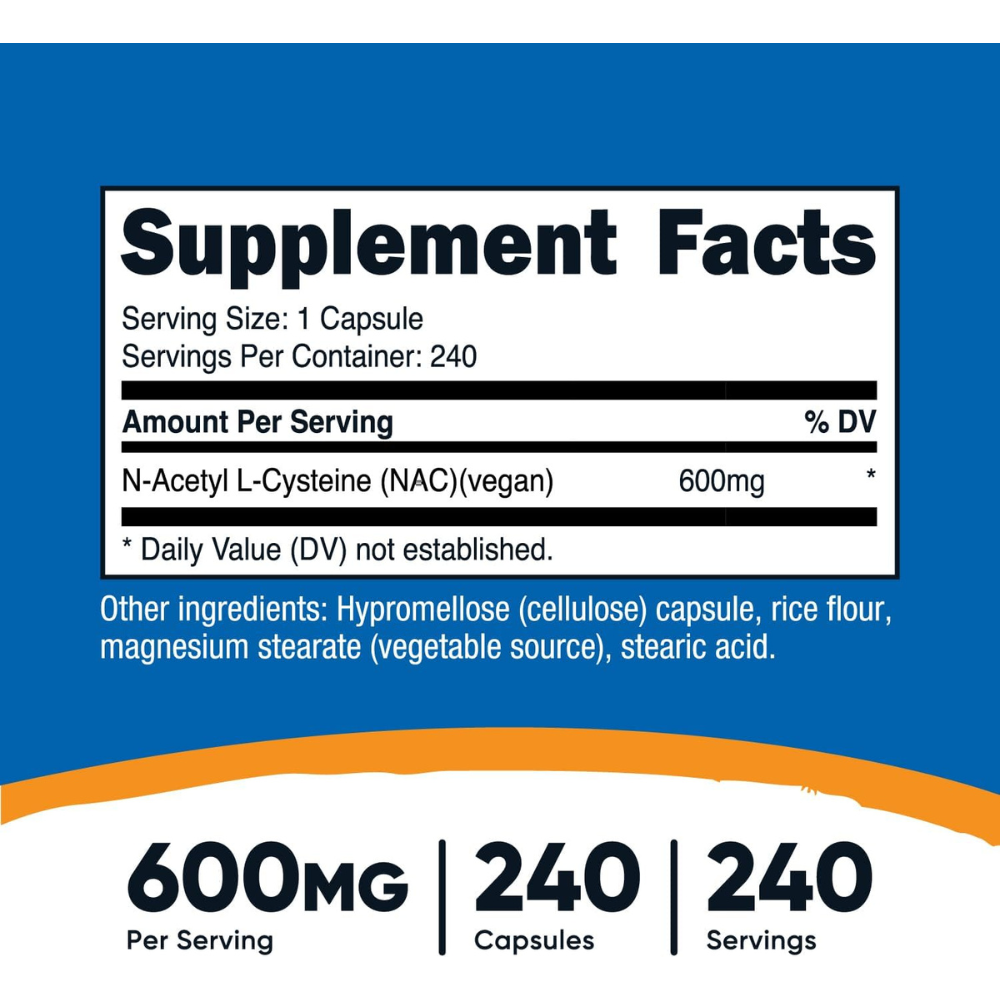 Nutricost N-Acetyl L-Cysteine (NAC) 600mg, 240 Vegetarian Capsules – Vegan, Non-GMO, Gluten Free