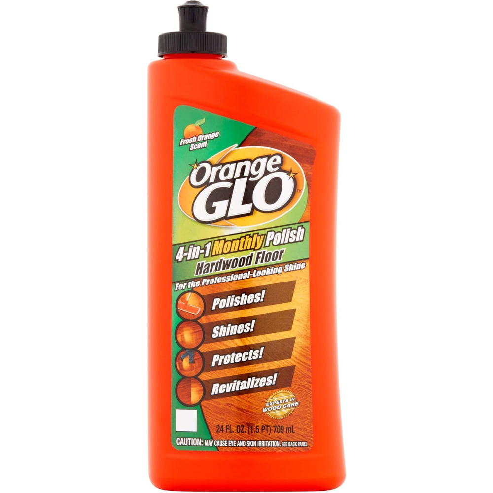 Add a professional-looking shine and bring out the beauty of your hardwood floors with Orange Glo 4-in-1 Monthly Polish Hardwood Floor. This orange floor cleaner delivers outstanding results and four benefits in one bottle as it polishes, protects, shines, and revitalizes to bring out the natural luster and beauty in your hardwood floors. The fresh orange scent and unique formula make it an ideal hardwood floor cleaner for homes with pets and lots of foot traffic. Use this Orange Glo floor polish no more than once a month. Simply squirt it on and use a damp mop to clean away dirt and grime while this orange floor cleaner fills in scratches, protects floors from water damage, and leaves a long-lasting shine!