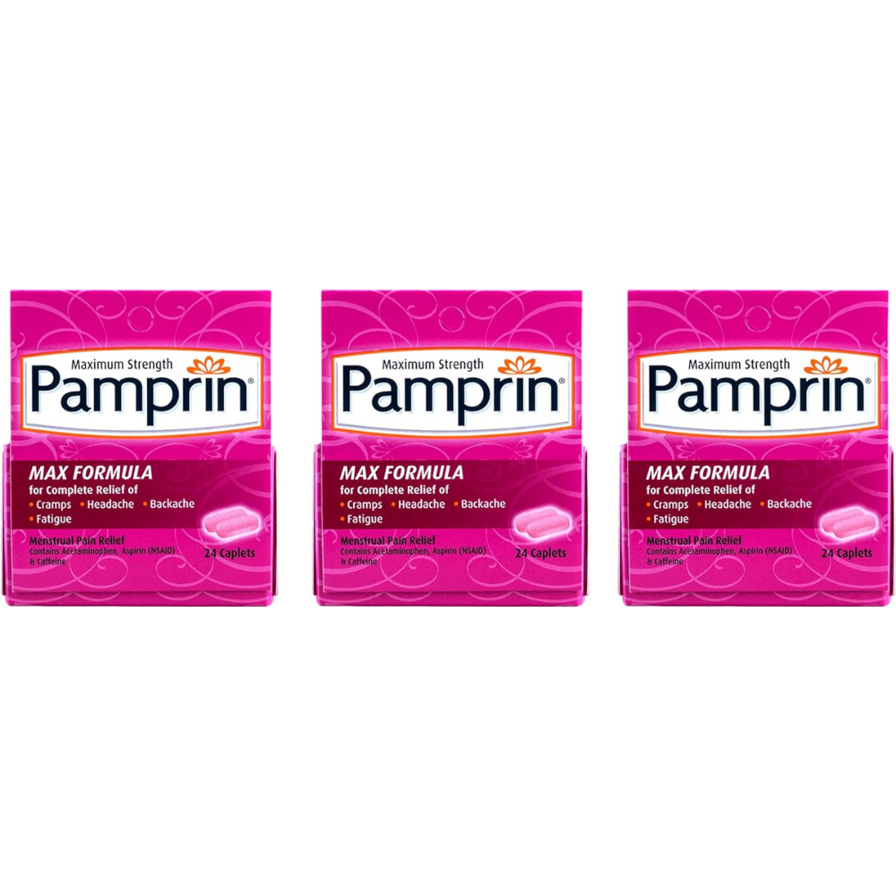 With both aspirin and acetaminophen for pain relief, caffeine for water weight gain, fatigue, bloating, Pamprin Max Pain + Energy offers complete coverage for PMS symptoms
