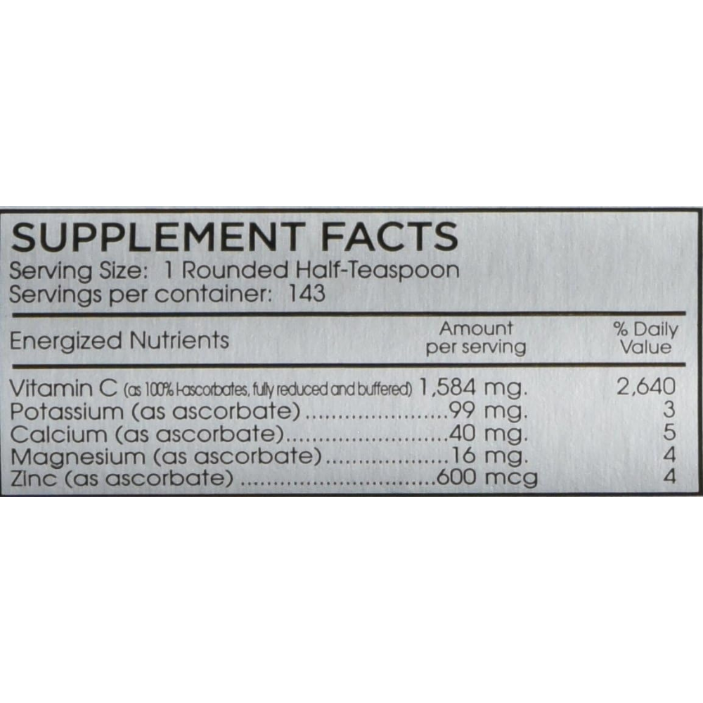 Benefit: Reduces tissue damage with fully buffered and reduced 100 percent L Ascorbate shown most effective form of vitamin C in six peer reviewed outcome studies.