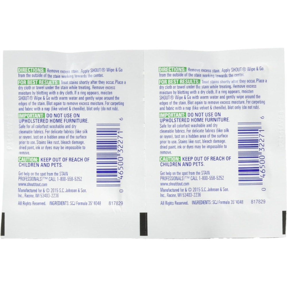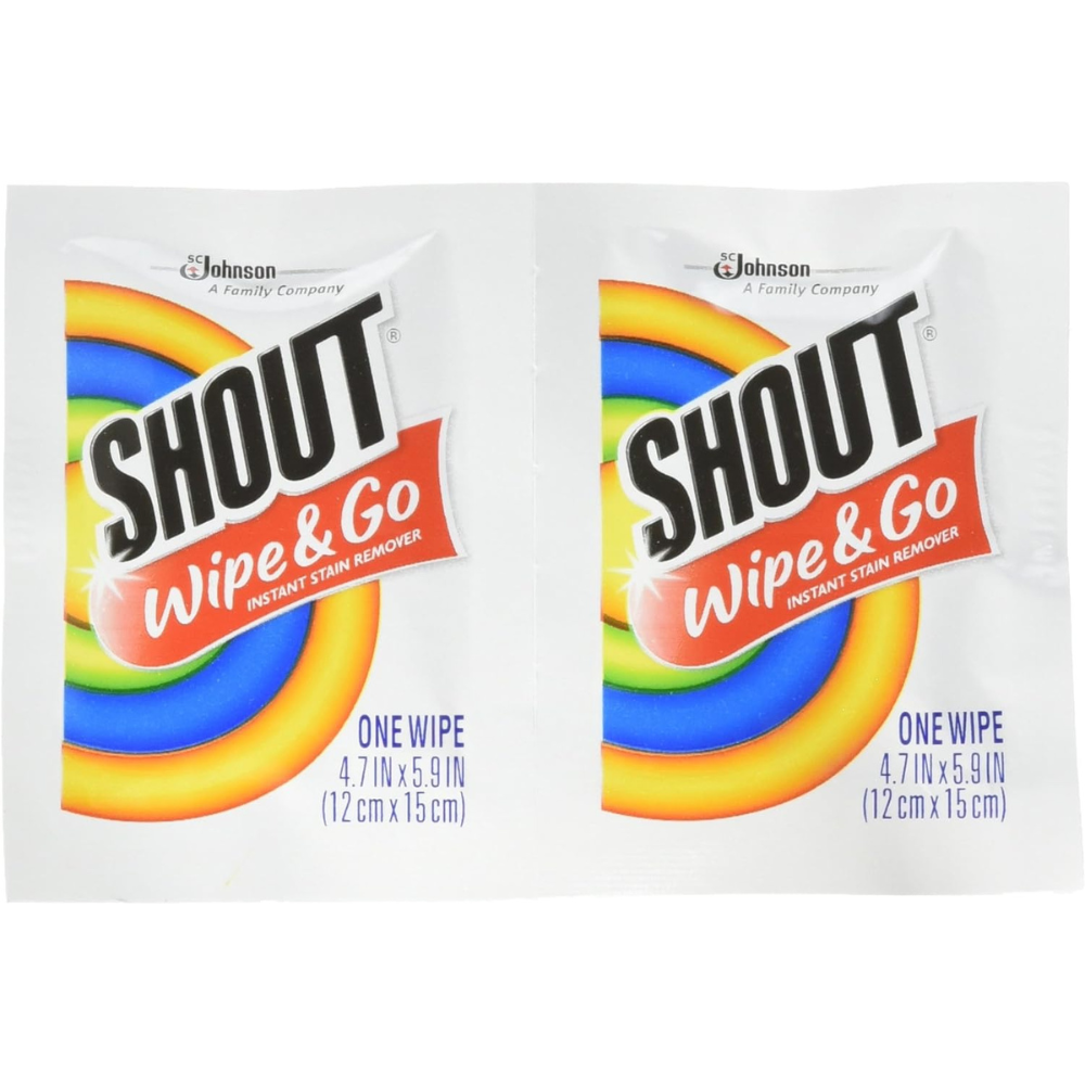 Value pack of 80 shout wipe & go instant stain remover towelettes. Disposable! Just throw them out after use.Take it along wherever you go. Tough on stains! Instantly removes and treats stains from clothes. Perfect for clothing, carpets, auto interior etc. towelette size; 4.7” x 5.9” inches