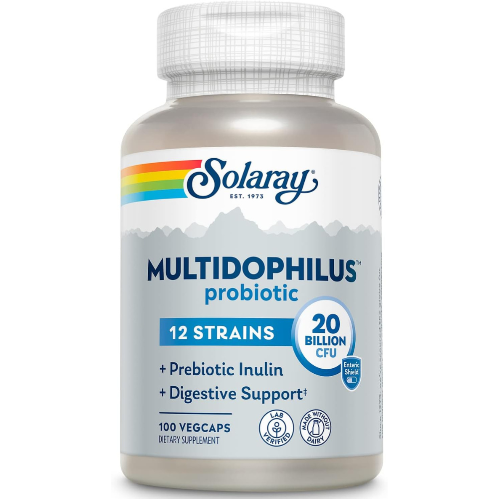 SOLARAY Multidophilus 12 Strain Probiotic 20 Billion CFU, Probiotics for Digestive Health and Gut Health Support, Prebiotic Inulin, No Dairy, 50 Serv, 100 VegCaps