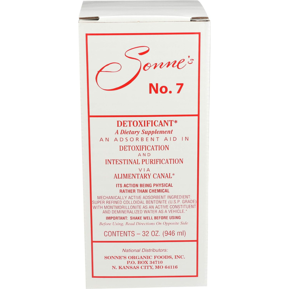 Sonne’s Organic Foods – Sonne’s No. 7 Detoxification, 32 fl oz liquid. Ingredient: Colloidal Bentonite (U.S.P. GRADE) containing the activeconstituent montmorillonite super-refined with demineralized water as a vehicle.