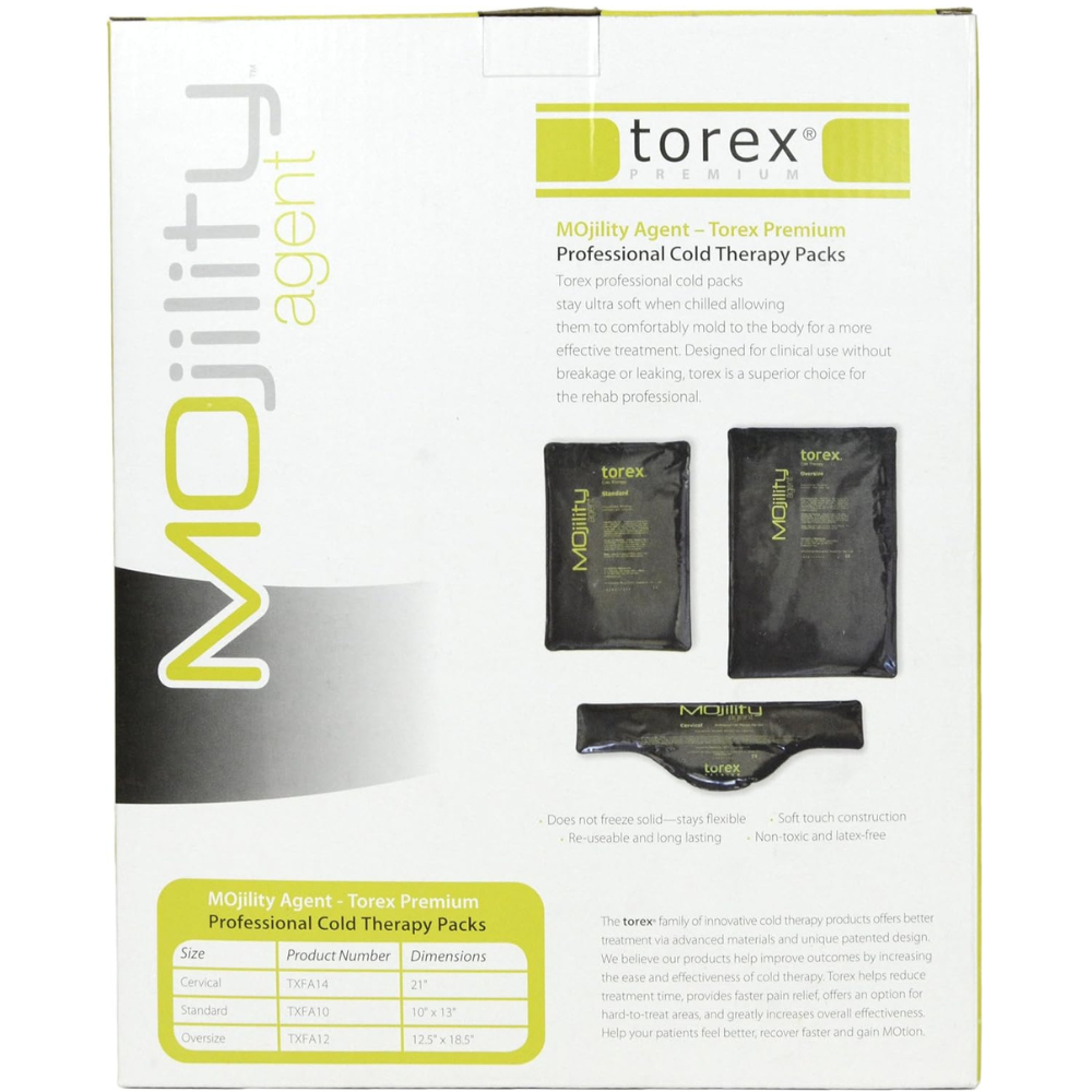 MULTIPURPOSE: Torex Mojility Oversized Cold packs are reusable and can be frozen to help reduce swelling or bruising. This oversized model is particularly good for icing down large muscle groups, as well as the back.