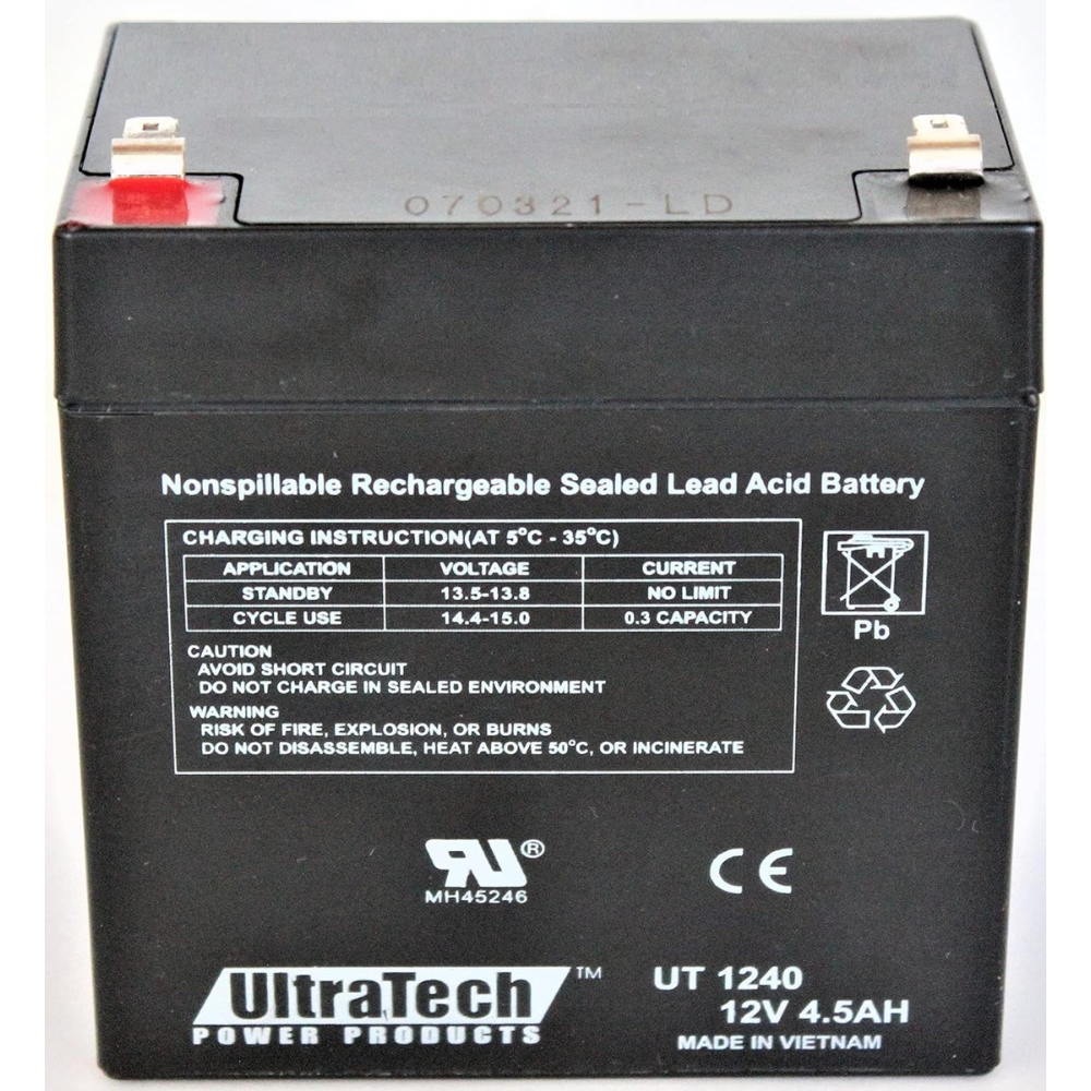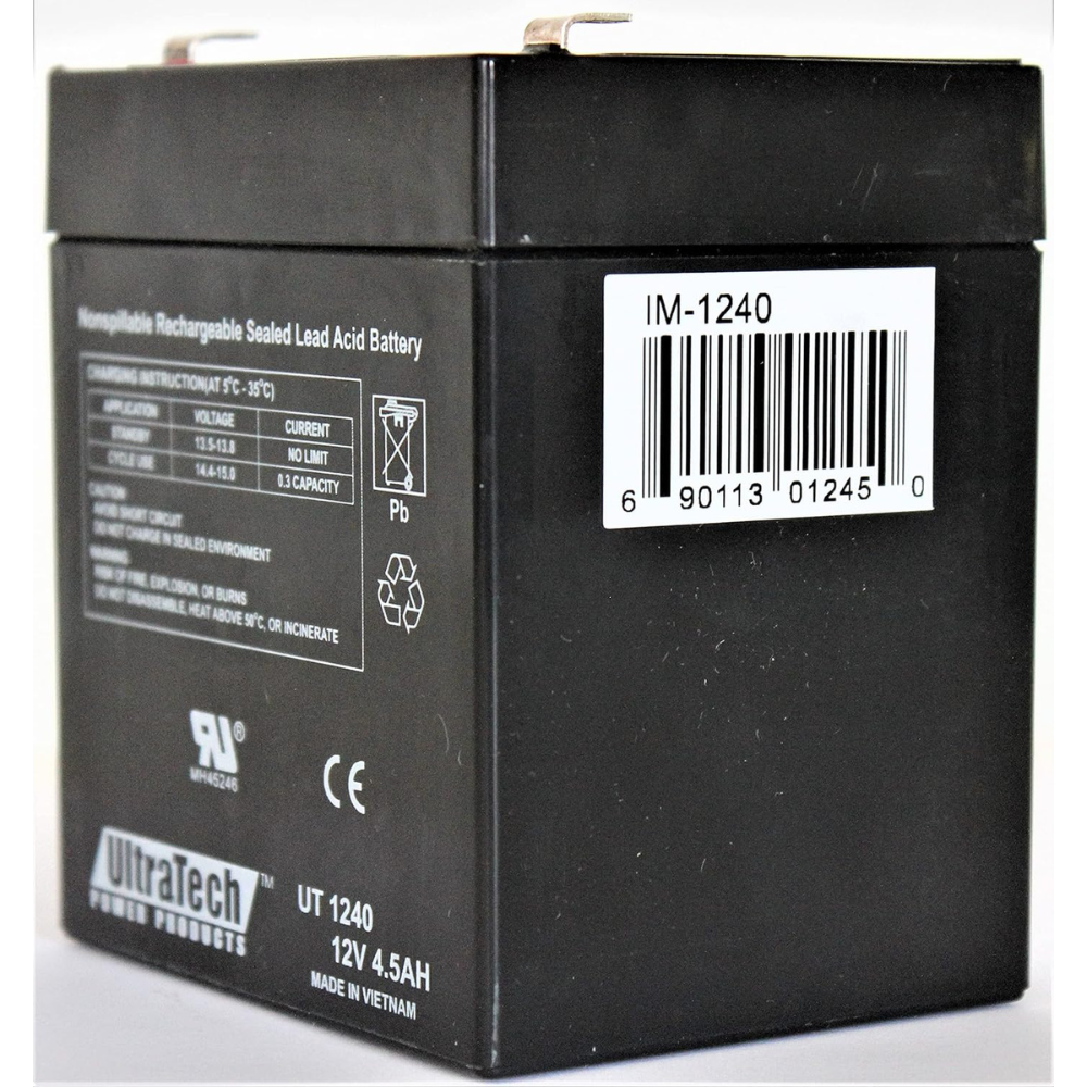 The UltraTech Power Products UT 1240 is a 12V 4.5 AMP Sealed Lead Acid Battery