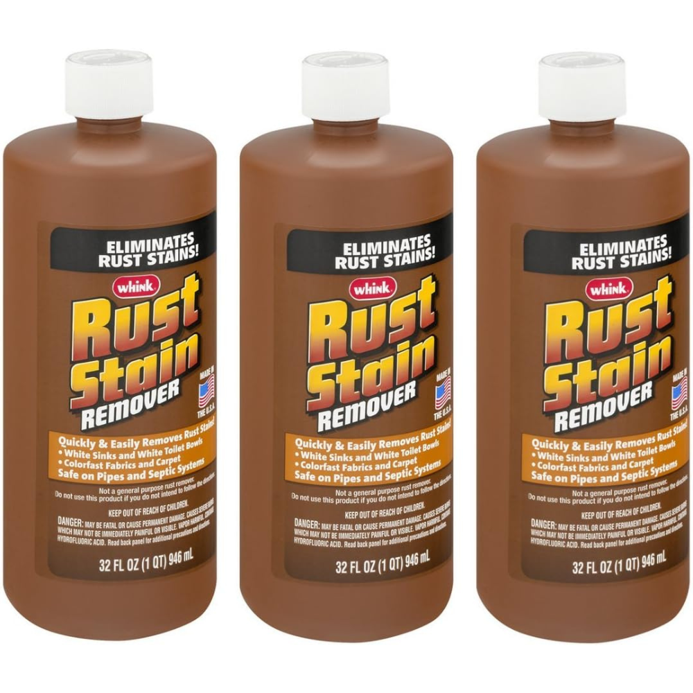 Whink Rust Stain Remover eliminates rust stains from white sinks and white toilet bowls, colorfast fabrics, and carpet, quickly and easily. Safe on pipes and septic systems. Not a general purpose rust remover. Be sure to follow label directions. Do not use on any surface not specifically stated in label directions, including bathtubs, countertops, stainless steel sinks, and glass surfaces. 32 fluid ounce bottle. USA